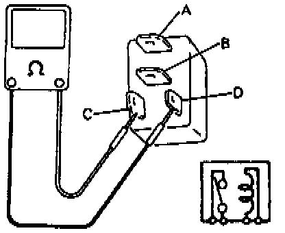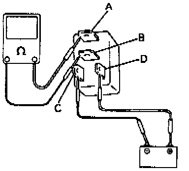 4. Check that there is continuity between terminals "A" and "B" when battery is connected to terminals "C" and "D". If found defective, replace.