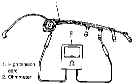 - If resistance exceeds specification, inspect distributor terminal and replace high-tension cord(s) and/or distributor cap as required.