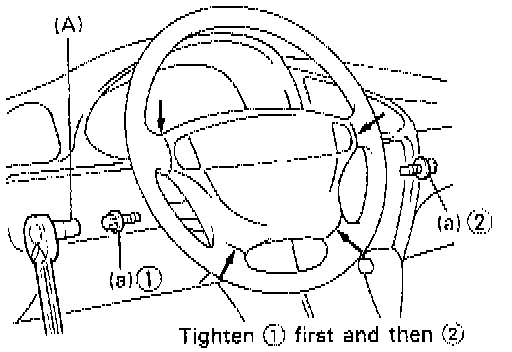 2. Tighten air bag (inflator) module left side bolt first and then its right side bolt to specified torque.