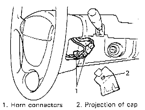3. Connect horn connectors securely, fit connector onto projection of steering wheel right side cap and then install right side cap on steering wheel lower cover.