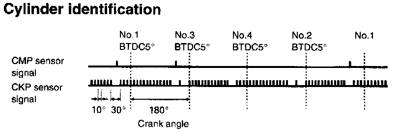 The sensor is mounted on the sensor case (distributorless ignition case ) on the camshaft left side. The signal rotor is press- fitted onto the camshaft. As the sensor has a built-in hall element (element which generates voltage from changes in the magnetic flux) and a waveform forming circuit, it converts changes in the magnetic flux caused by rotation of the signal rotor into electric pulse signals. Using this signal and the signal from the CKP sensor, ECM (PCM) identifies the cylinder whose piston is in the compression stroke.