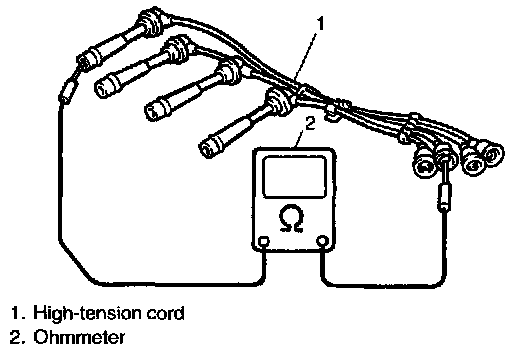 5) If resistance exceeds specification, replace high-tension cord(s).