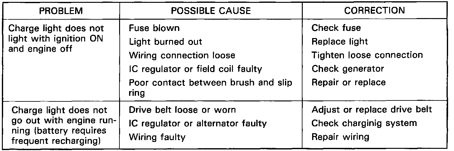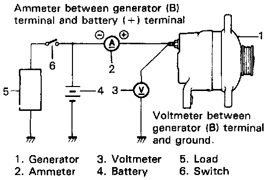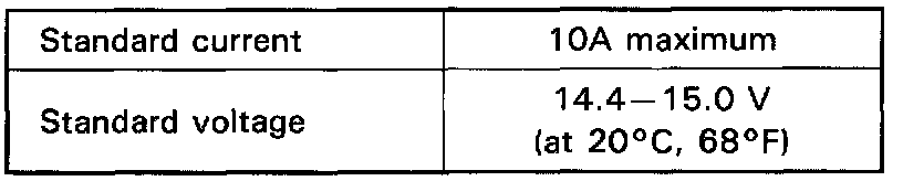 4) If voltage is in standard value, run engine at 2,000 rpm and turn on head light and heater motor. Mesure current and if less than 20A, repair generator.