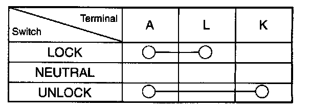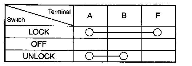 Inspect continuity at terminals according to the door lock switch action.