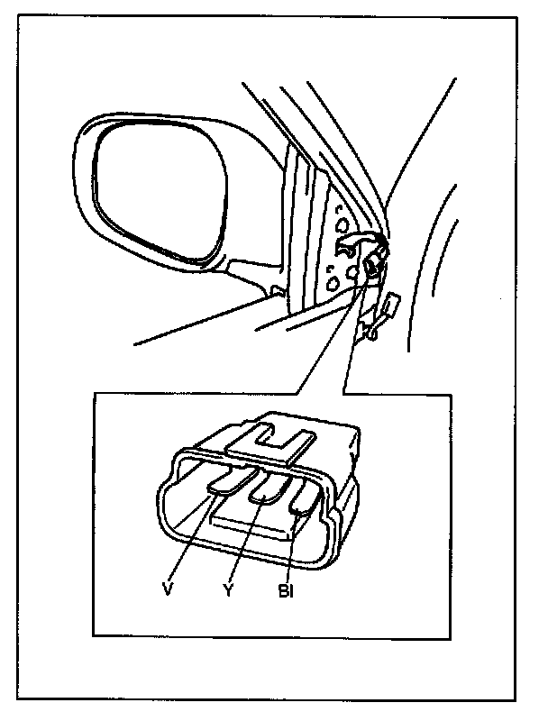 Connect battery positive and negative terminal to the door mirror terminal shown.