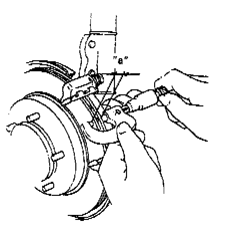 NOTE: When pads are removed, visually inspect caliper for brake fluid leak. Correct leaky point, if any.