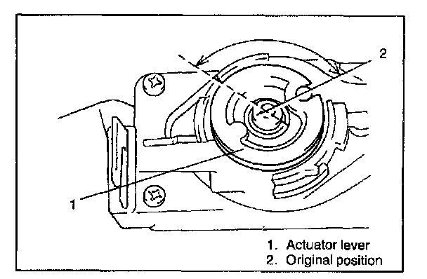 3. When hand is taken off from actuator lever at the position in 2) above, it should return to its original position by return spring force. If actuator lever does not operate as described above, replace it.