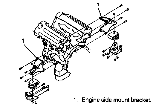 2. Tighten nuts fastening engine side mounting brackets and engine mountings.