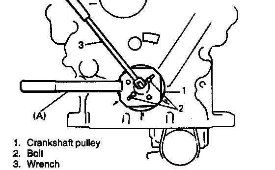 4. Install crankshaft pulley. To lock crankshaft pulley, use special tool (camshaft pulley holder) with it at shown in figure.