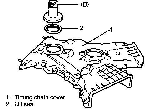 NOTE: When installing new oil seal, top it in until its surface is flash with edge of timing chain cover. To install oil seal, use special tool (bearing installer).