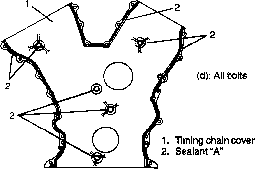 1. Apply sealant "A" to timing chain cover sealing surface area as shown in figure.