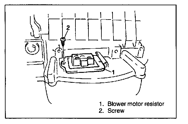6. Remove heater blower resistor by loosening its fastening screw.