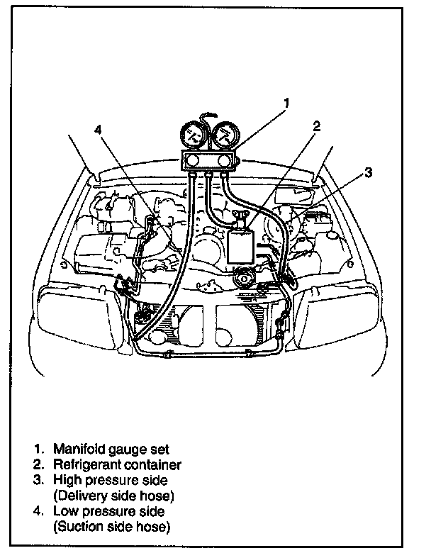 1. Install manifold gauge set as illustrated.