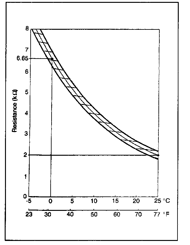 EVAPORATOR THERMISTORA thermistor is a temperature sensor to sense the temperature of air discharged from evaporator. The electrical characteristic is shown left.