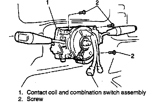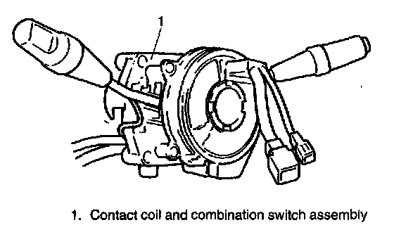 NOTE: New contact coil and combination switch assembly is supplied with contact coil set and held at its center position with a lock pin and seal. Remove this lock pin after installing contact coil and combination switch assembly to steering column.