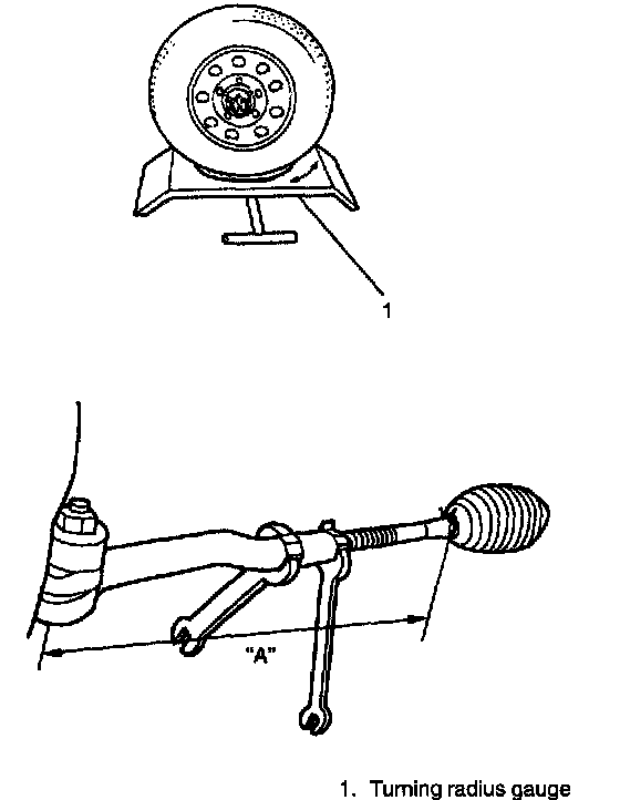 When tie rod end was replaced, check toe and then also steering angle with turning radius gauges. If steering angle is not correct, check if right and left tie-rods are equal in length ("A" in left figure).