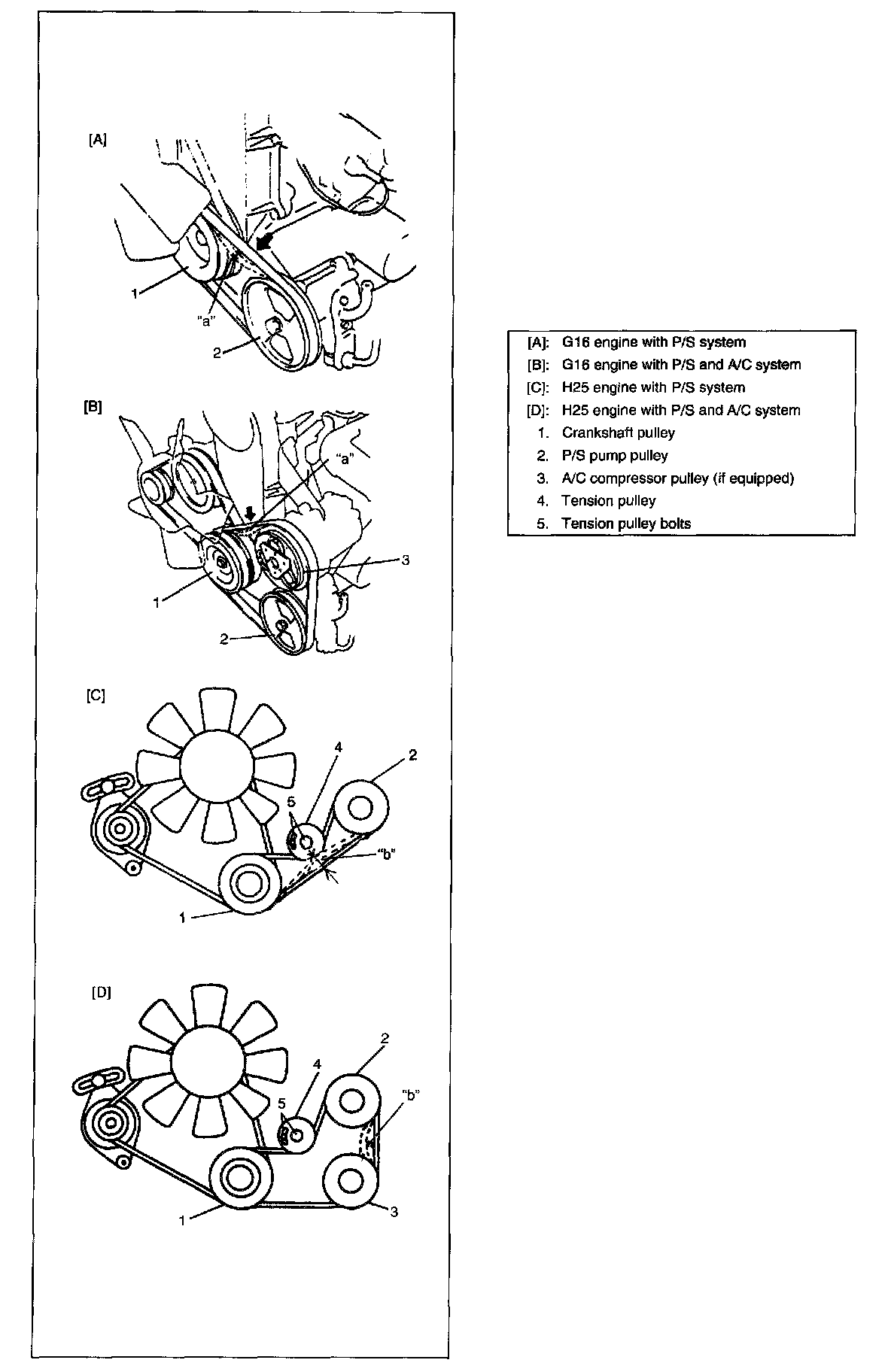Power steering pump and/or A/C compressor drive belt tension (G16 and H25 engines)