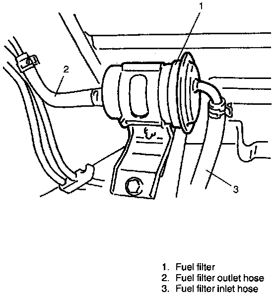 4. Disconnect inlet and outlet hoses from fuel filter.