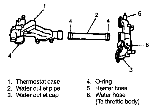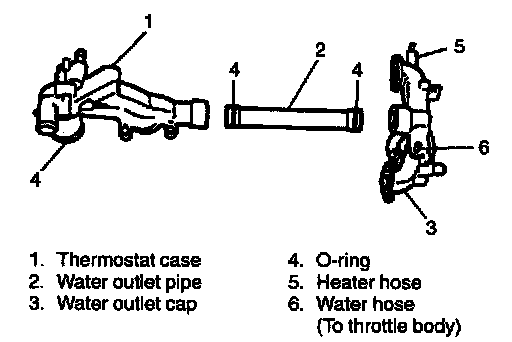 2. Install water outlet pipe to thermostat case with new O-rings.