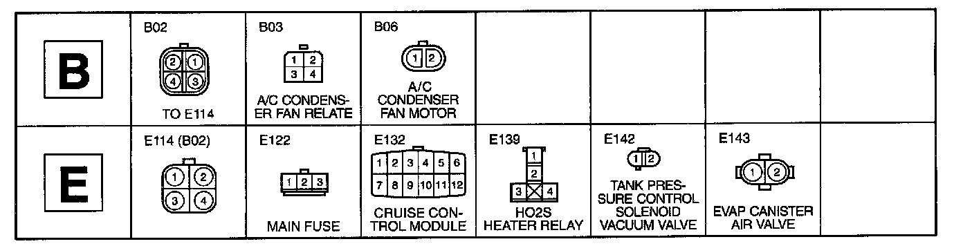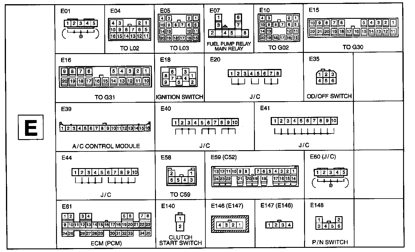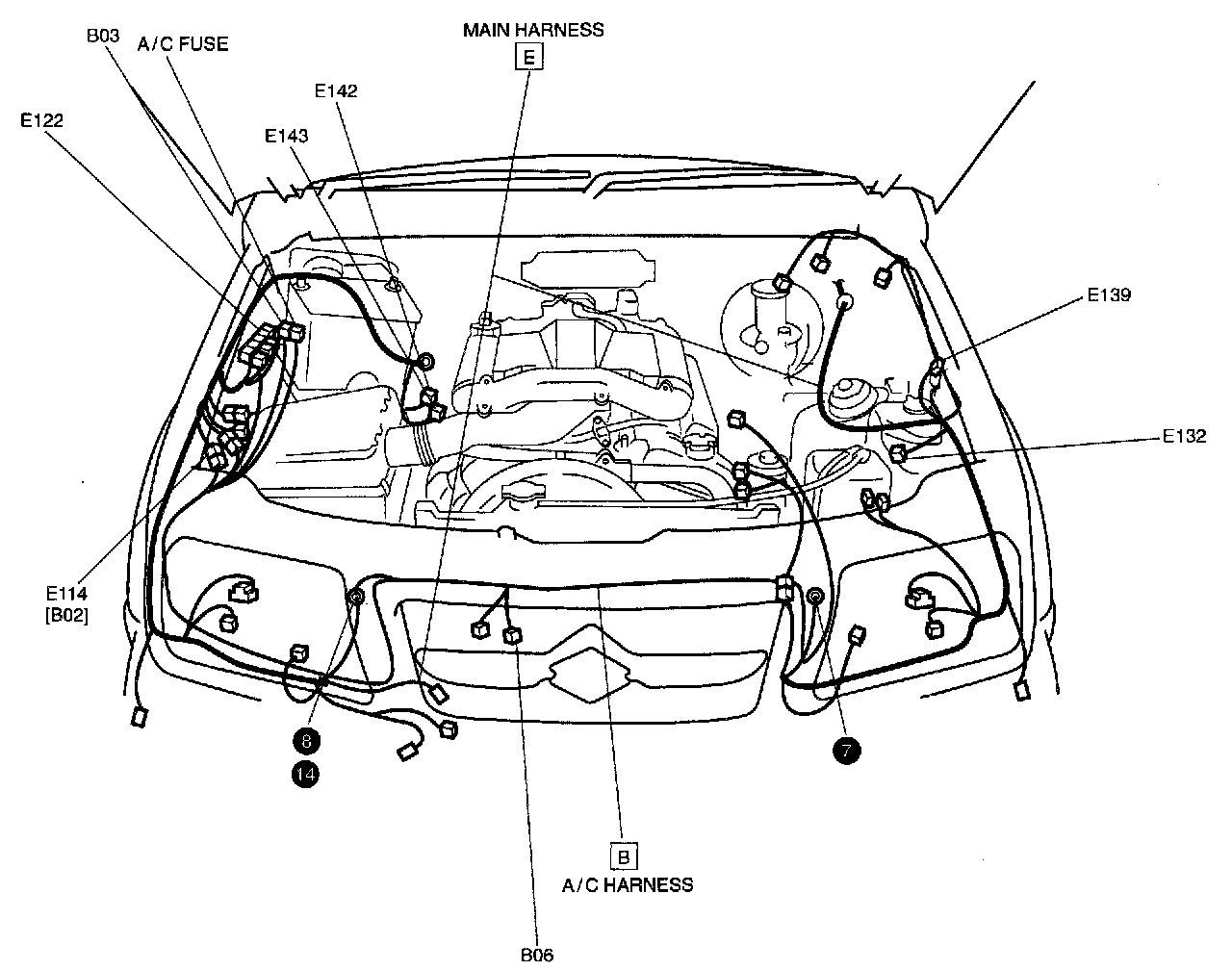Main Harness (Connectors "E") and A/C Harness (Connectors "B")