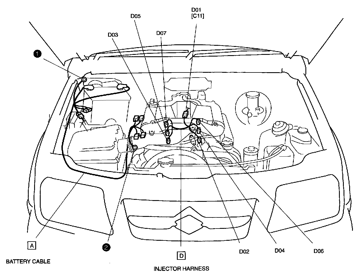 Battery Cable (Connectors "A") and Injector Harness (Connectors "D")