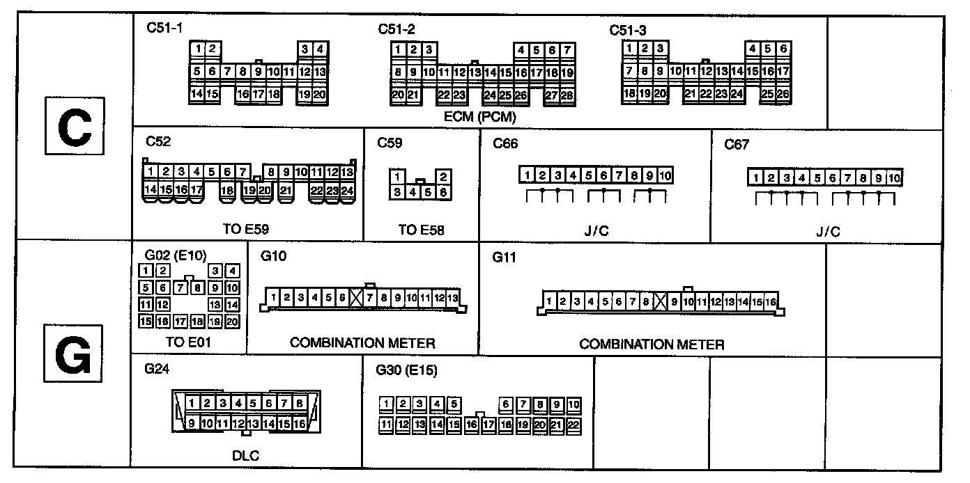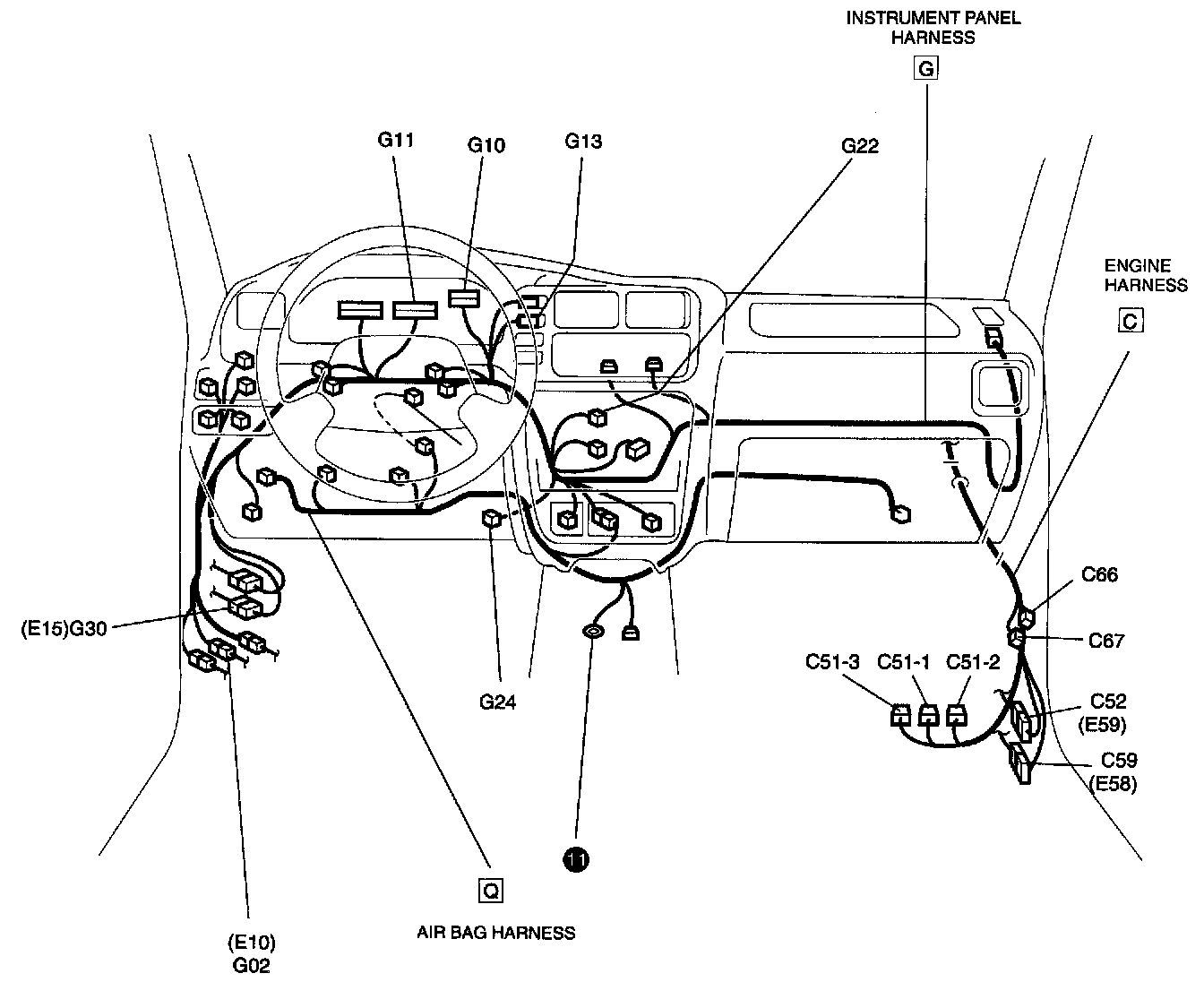 Instrument Panel Harness (Connectors "G") and Air Bag Harness (Connectors "Q")
