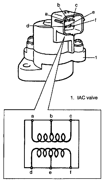 2. Check each coil of IAC valve for resistance.