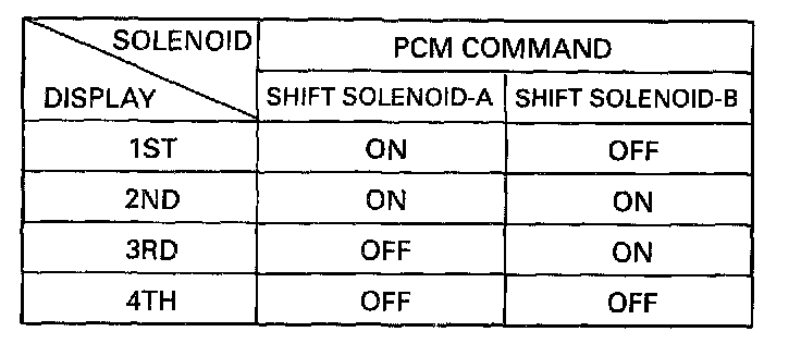 The gear position is determined on the basis of the command state signals generated from PCM to shift solenoids A and B (#1 and #2) and displayed as shown in the table)