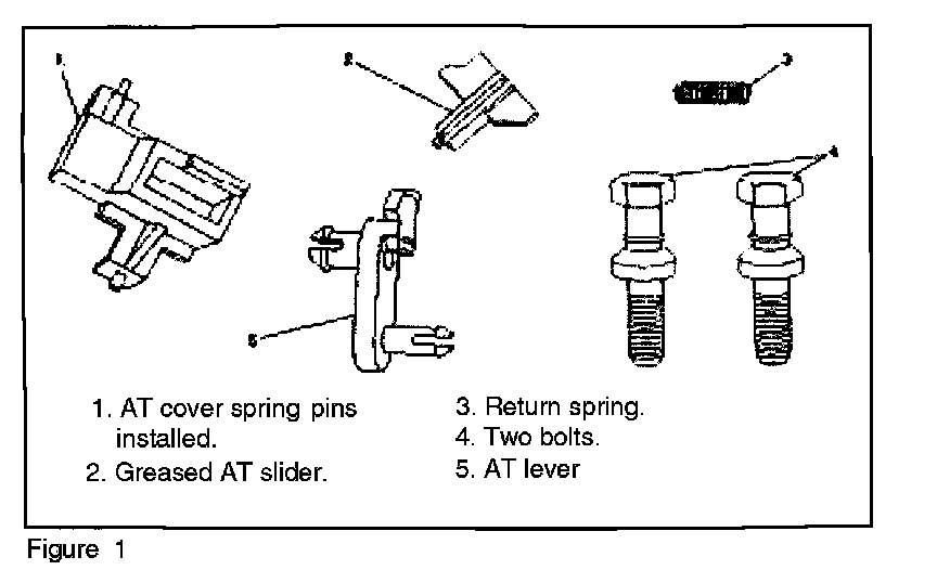 Do NOT discard the small plastic bag after removing the slider from it in the above step. The small amount of grease remaining in the bag will be used later in this procedure. Also, do not install the spring in the AT cover until instructed.