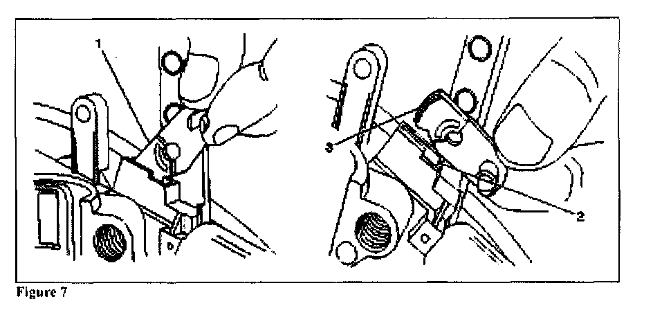 26. With the ignition key in either the ON or ACCESSORY position, by hand, move the AT lever in (1) and out (3) of the slot (2) in the AT cover. Verify that it moves freely in and out of the AT cover slot at least 5 times as shown (Figure 7).