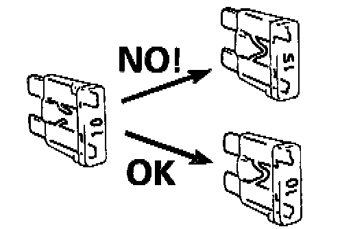 ^ When using a tester for checking continuity or measuring voltage, be sure to insert the tester probe from the wire harness side.