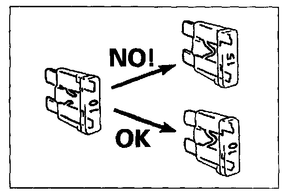 - When replacing a fuse, make sure to use a fuse of the specified capacity. Use of a fuse with a larger capacity will cause a damage to the electrical parts and a fire.