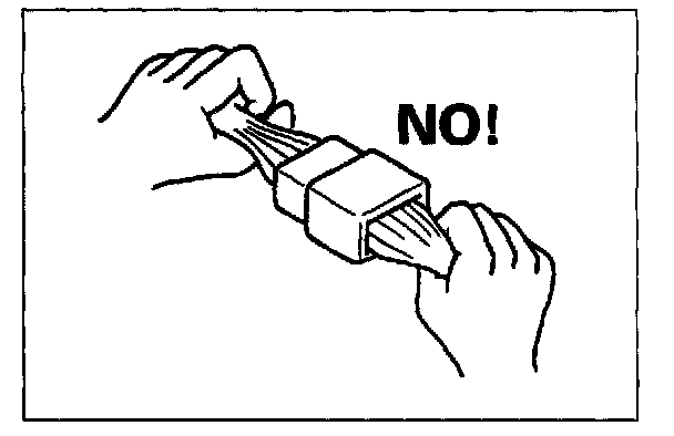- When disconnecting connectors, never pull the wiring harness. Unlock the connector lock first and then pull them apart by holding connectors themselves.