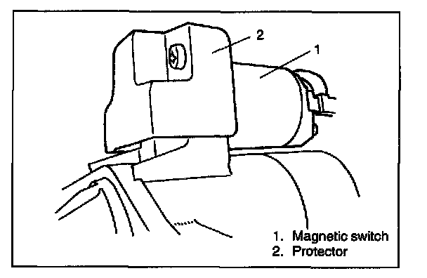 16. Install magnetic switch assembly and protector (if equipped). Connect wire (switch to motor) to switch terminal.
