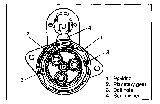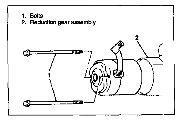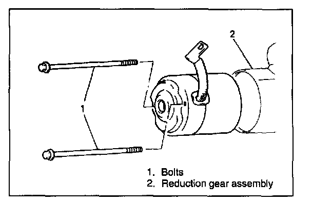 2. Remove bolts shown in left figure, then separate reduction gear assembly from starting motor assembly.