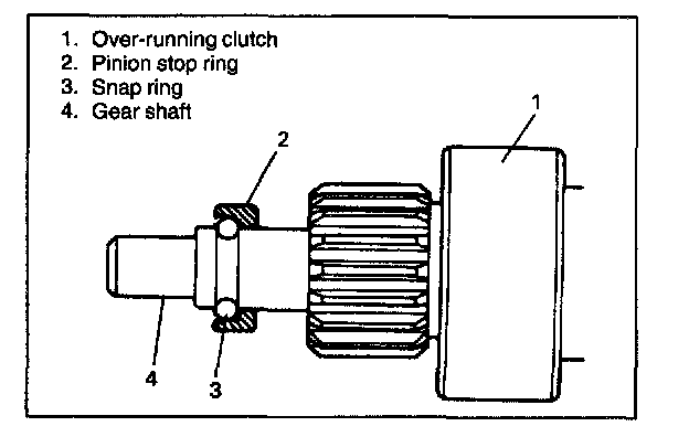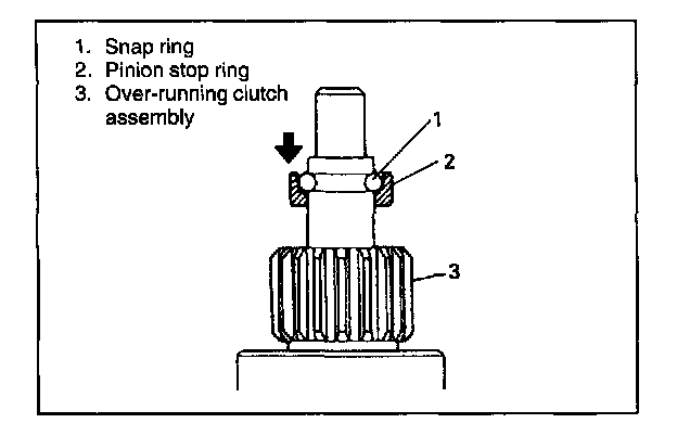 9. Install over-running clutch assembly to gear shaft, using care for installing direction of pinion stop ring.