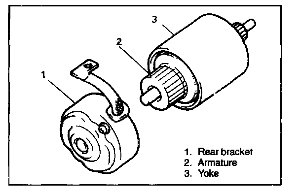 14. Install yoke, armature, brush holder and rear bracket to front housing by aligning match marks provided before removal.