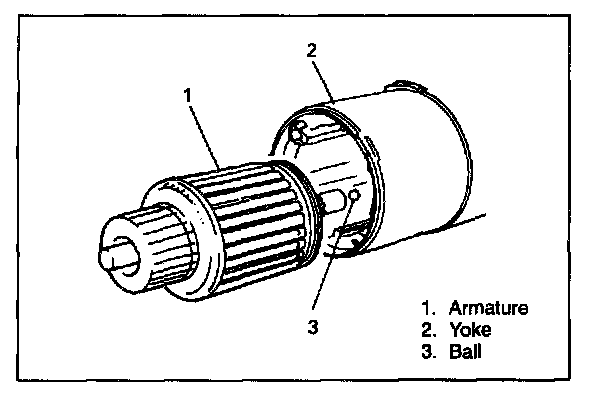 9. Remove armature from yoke and then ball from the end of armature shaft.