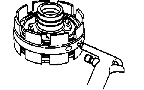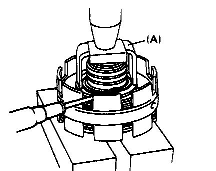 6. Using special tool and hydraulic press, compress piston return spring and remove snap ring.