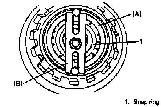 2. install reverse brake piston assembly and brake piston return spring to transmission case, using care not to damage 0-ring. Then install snap ring with special tool.