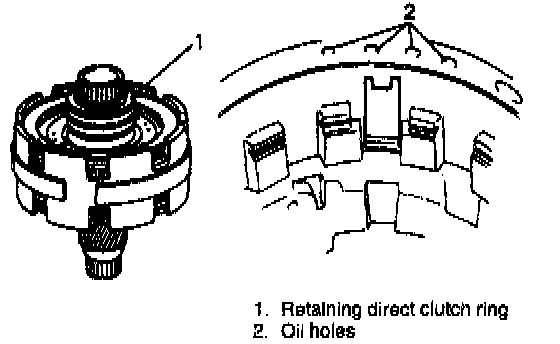 NOTE: Unless retaining direct clutch ring of planetary sun gear is held, brake valve gets off center support and that will make it impossible to align fluid holes with bolt holes.