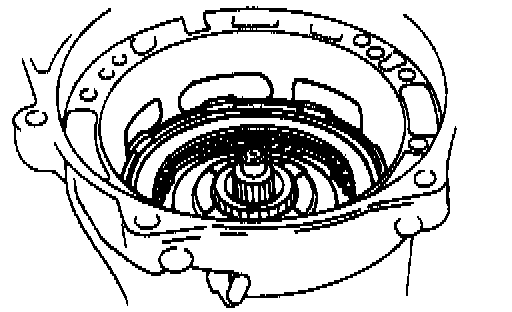 NOTE: Ends of splines in direct clutch cylinder and planetary sun gear should come almost in match.
