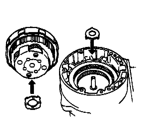 - Fit claws of thrust planetary rear washer and thrust planetary ring front race into holes securely.