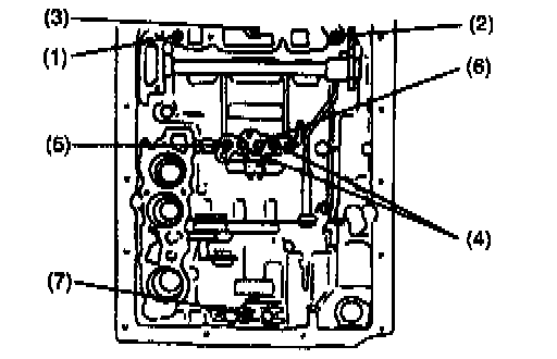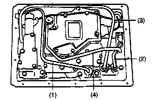 39. Using a plastic hammer, connect (1); forward clutch applying tube, (2); lube applying tube, (3); reverse brake applying tube and (4); brake applying tube in such order as shown in figure.