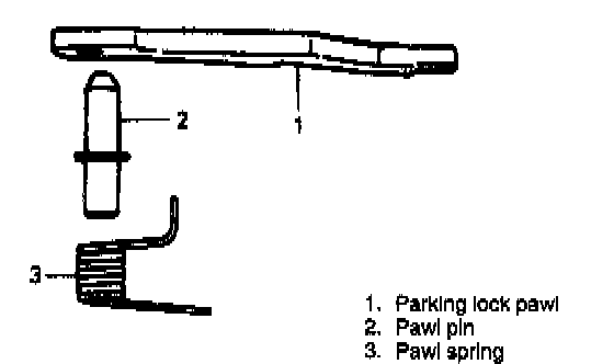 26. Install parking lock pawl, pawl pin and pawl spring to transmission case.