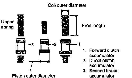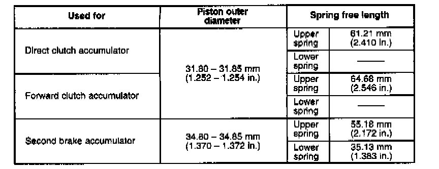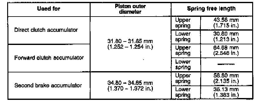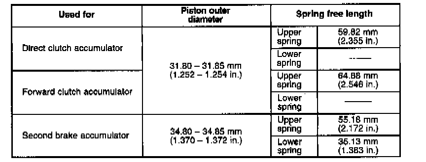 33. Apply A/T fluid to new 0-ring and spring and install them to accumulator piston and install accumulator piston to transmission case.