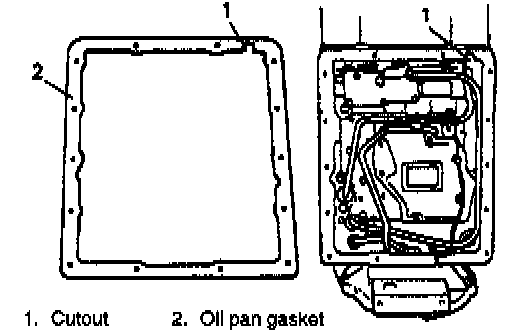 NOTE: Align cutout in oil pan gasket with that In transmission case.