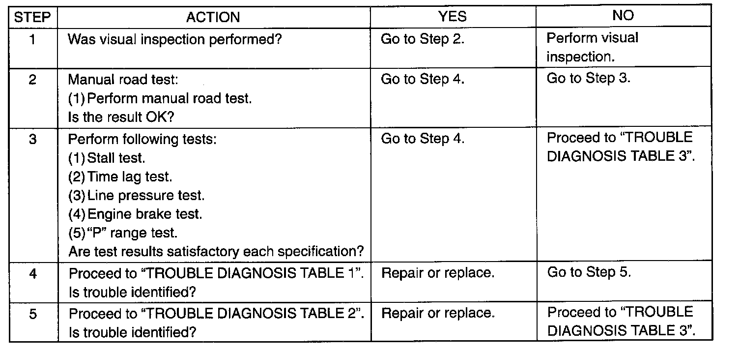 AUTOMATIC TRANSMISSION BASIC CHECK FLOW TABLE