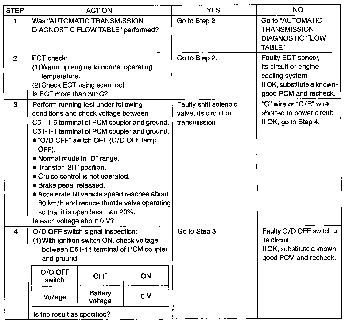 DIAGNOSTIC FLOW TABLE A2 (NO GEAR SHIFT TO O/D)SYSTEM DESCRIPTION