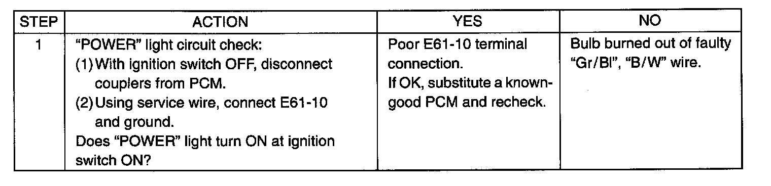 ("POWER" LIGHT DOES NOT LIGHT FOR 4 SEC. AFTER IGNITION SWITCH ON)